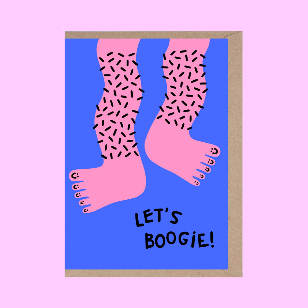 Let's Boogie Card ~ Infuse a sense of joy and whimsy into your greetings with the "Let's Boogie" card from Rumble x Wobbly Studio.