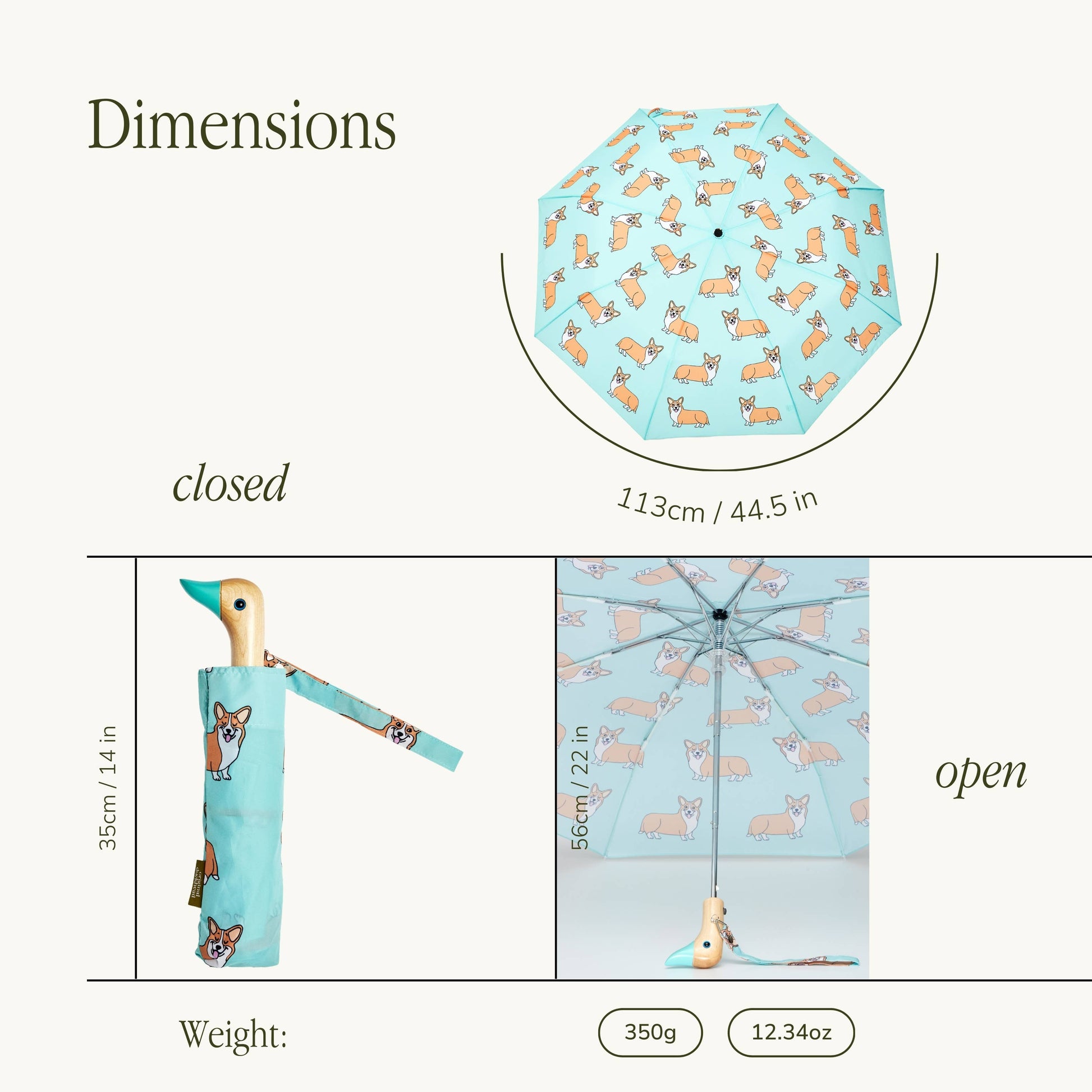 Turn rainy days into fun with the Corgi Mint Eco-friendly Umbrella! Made from recycled plastic bottles, it features a cute Corgi pattern on a fresh mint background. Lightweight and compact, it fits perfectly in your bag and sports a unique bright blue eye for a playful touch. Perfect for staying dry with style!