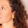 The Violette earrings mix pastel orange and ice blue in a fun, handcrafted glass design. Their playful asymmetry adds a fresh, modern touch that brightens any outfit, day or night. Light and stylish, they're perfect for showing off your unique personality!