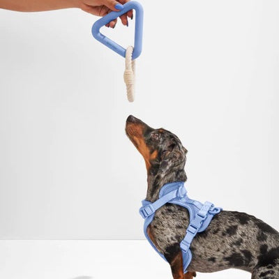 The perfect tug-of-war toy, with two shapes and two textures. Made of natural, pet-safe rubber and cotton. Complete with a reinforced core and stitching throughout for added strength. If you’re in a multi-dog household or often at the other end of a tugging match, the Triangle Tug is designed for you.