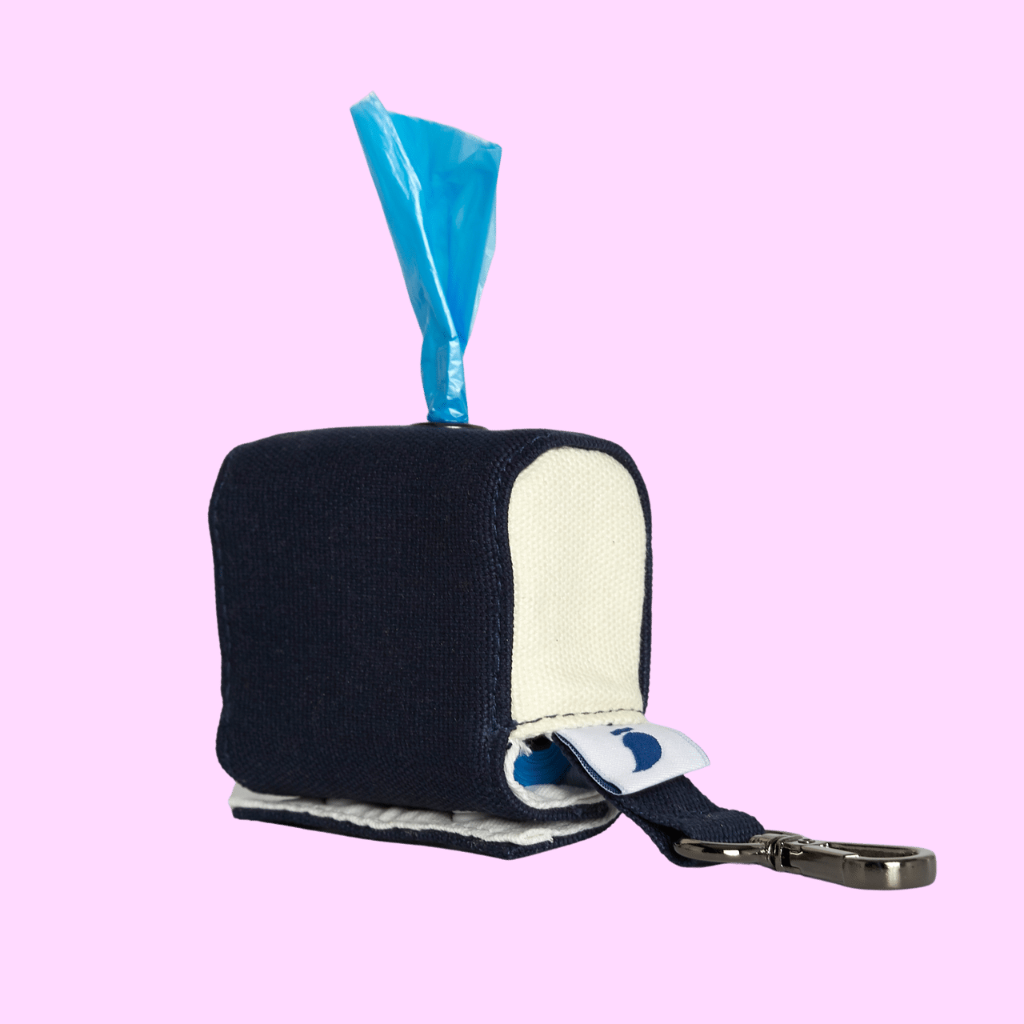 Effortlessly carry up to two rolls of dog poop bags on the go with our durable cotton canvas dispenser pouch! Clip it onto your leash, keyring, or our matching carrier.