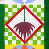 This playful print brings a taste of summer with tropical mango and passion fruit wrapped in intricate vintage tile-inspired patterns. Twisting passion fruit vines add a fun, natural flair to the precise geometric design. Crafted with careful hand-drawn stencils and layers of acrylic paint, each tiny square shows off dedication and craftsmanship.