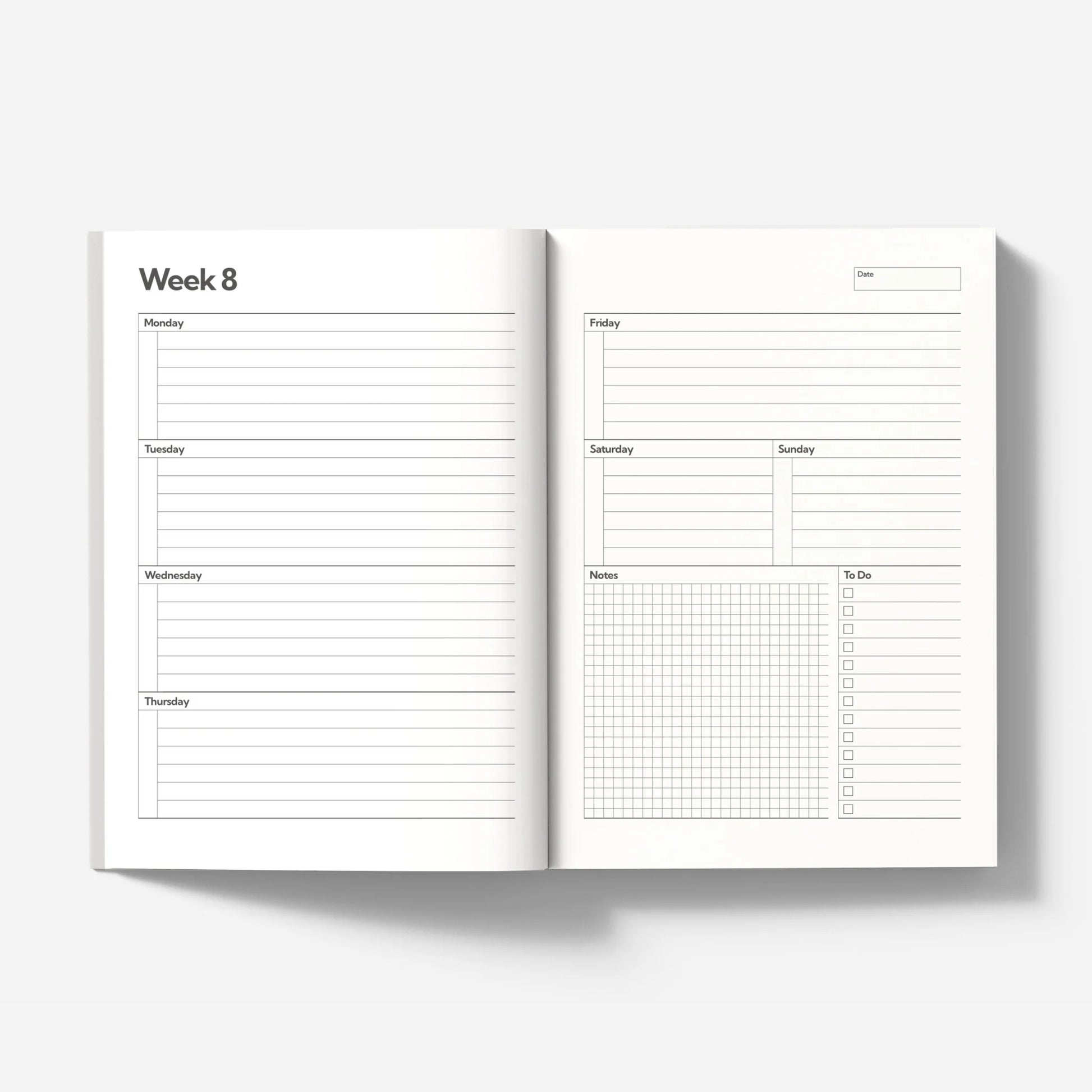 Stay on track with The Weekly Planner - Midnight! With 18 months of undated space, it’s perfect for flexible planning. Its thick textured cover and uncoated pages combine style and function. Get organized with a planner as chic as you are!