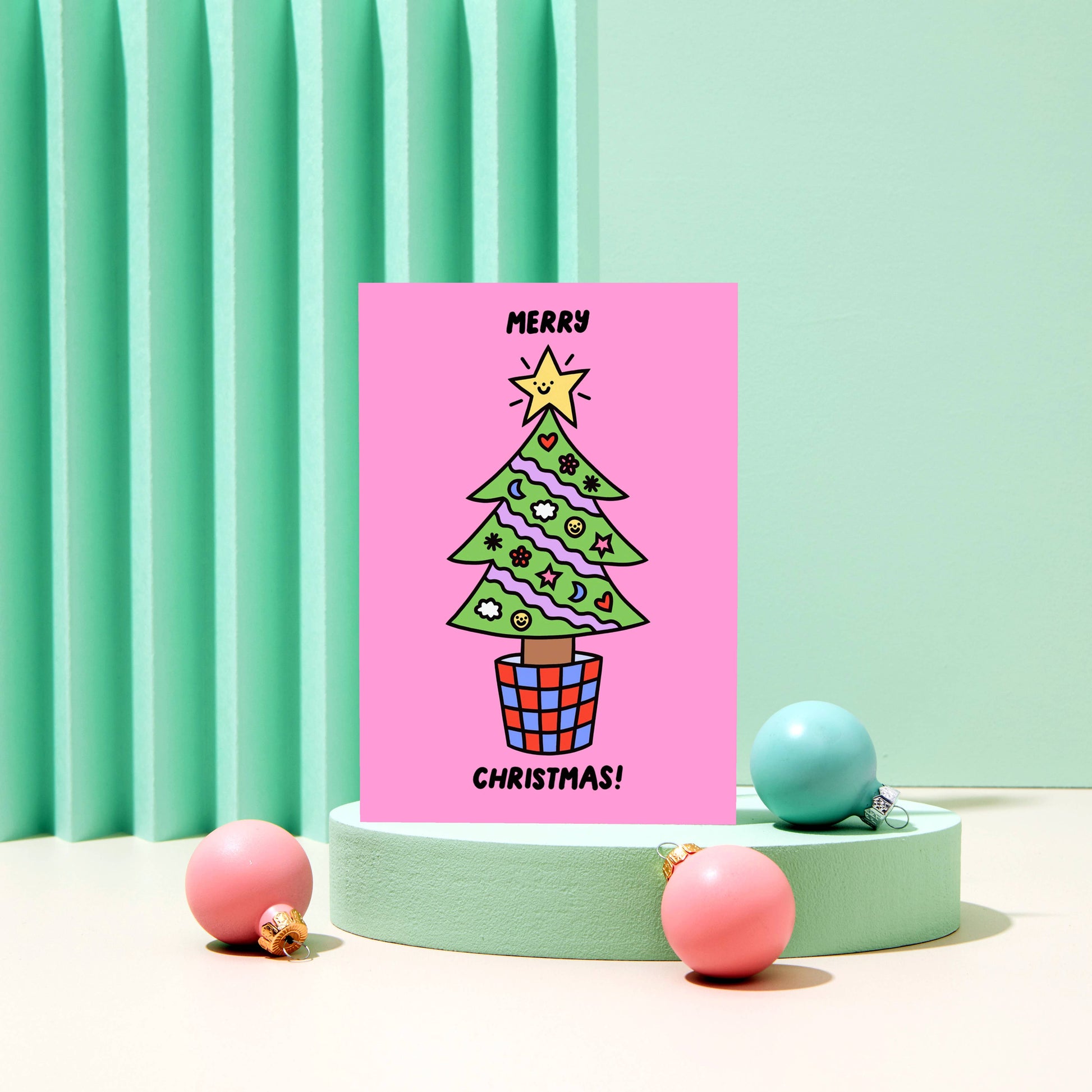 Spread joy and cheer like never before with this adorably playful Christmas card from Rumble Cards x Rosie Pink. Featuring a festive Christmas tree, it's the perfect way to wish someone a "Rosie" Christmas.